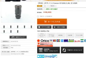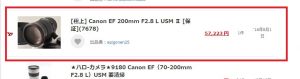 キヤノンの EF 200mm F2.8L II USM というレンズをヤフオクで売るとしましょう。