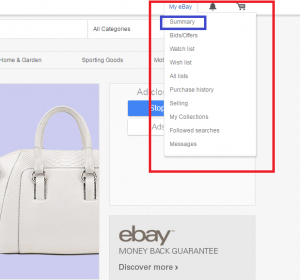 ここのページに入ると右上の「My ebay」にカーソルを持っていくとプルダウンメニューが出てきますね。